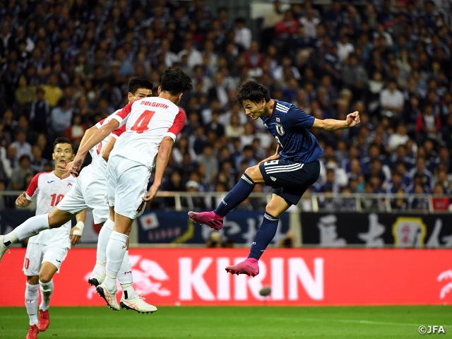 In the 82nd minute, Kamada converted a deflection coming off a shot taken by Endo to register his first goal with the national team. With TOMIYASU Takehiro (Bologna FC 1909) sustaining an injury at the final minutes, Japan was forced to play with 10 players for the remainder of the match but continued to apply pressure upfront to finish the match with a score of 6-0.