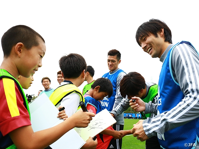 Ahead of this day’s training session, the players decided to take their time to interact with the local children, as nearly 70 primary students from the Saitama area joined the team to take pictures and played mini-games with the players. The participating children and players all shared laughter and spent a great time together. The kids were given the opportunity to get autographs from the players after playing football together, as each participant had their jerseys and note pads singed by the players.