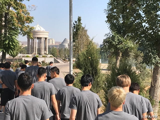 After arriving to Dushanbe on the night before, the SAMURAI BLUE (Japan National Team) held their first training session in Tajikistan on the evening of Saturday 12 October. Ahead of the session, the team took their time to walk around the stadium in the morning to loosen up their bodies and relax their minds following a long travel.