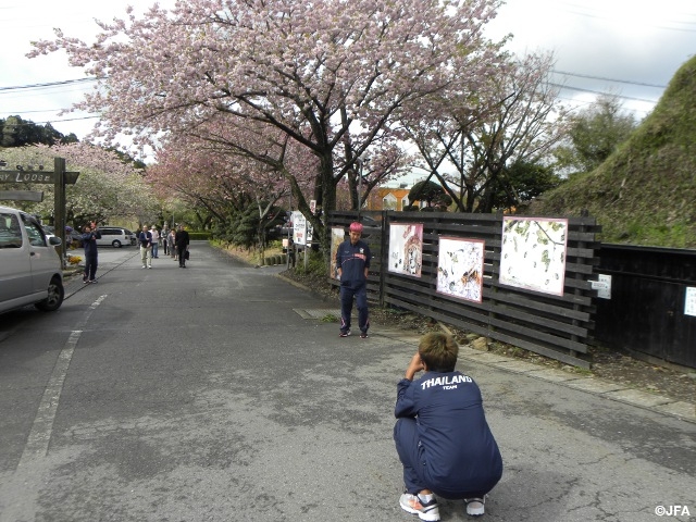 On the morning of the second day since their arrival, the team received warm welcome by the cherry blossoms on the hotel premises. Afterwards, they began taking photos of themselves under the trees.