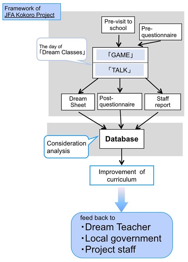 To maintain the quality of the Classes, it is operated under the framework of “JFA KOKORO (HEART) PROJECT METHOD” of which procedure consists of;