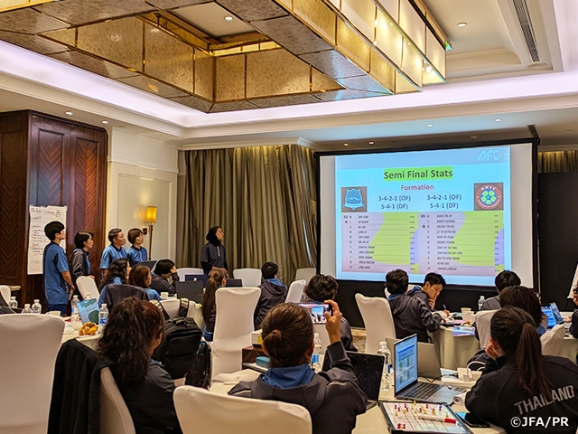 On the third day, for the first time at an AFC tournament, participants had a session with appointed referees. Coaches shared tactical analyses of the four semi-final teams with the referees, while also participating in the referees' briefing. The coaches were stimulated by the referees' serious discussions on consideration points and criteria for judging. Ms. NG Wing Kum from Hong Kong, China said, “I was so impressed by how much referees see the incident, make quick decisions in accordance with the Laws of the Game each play in an instant. When I go back to my team, if the players complain to the referees about the decisions, I want to correct them.” After the session with referees, every participant expressed their respect for the referees.