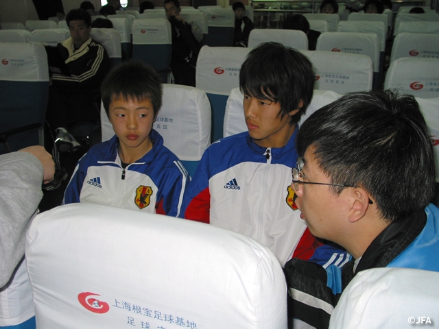 This was the first trial of training camp, it presented the opportunity to understand the positioning of “what is the Elite Program” at the same time. It was useful to review the original definition of the elite program and all the activities so far. As this year marks the first elite program players will be taking part in FIFA World Cup, all the staff shared the mission of this project as a heart of player development program. (Picture: KAKITANI (R) and SAITO (L) taking in an interview by Chinese Press when they went overseas for the first time.