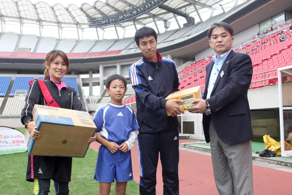 キリンビバレッジ(株)有吉俊彦 茨城営業部長(47)が、グランドレベルで楽しそうにプレーする様子を見つめた。昨年から水戸に赴任し、このスペシャルステージは初めての参加だった。「家族で楽しんでいる姿は素晴らしかった」と感動した様子。自身は高校まで硬式野球(外野手)を経験。フットサルは年に数回やっているが「結構ハードで、足がついていきません」という。現在はサッカーの日本代表戦をテレビで見たり、バレーボールの県大会出場が決まった下の息子さんの応援に行ったり、九州出身ということからソフトバンク戦をテレビで応援するのが楽しみだという。「子どもさんにとってこの日の経験は一生の思い出に残るのではないでしょうか。キリングループとしては今後とも日本のサッカーを応援し続けていきます」と話した。