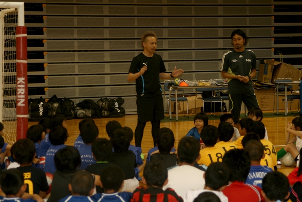 昼休み後には、「キリンフットサル教室」が開催された。講師は元フットサル日本代表で、このほどFリーグ湘南ベルマーレに現役復帰した藤井健太さん(35)が務め、約100人の子供たちが参加した。まず「人の話をきちんと聞いて、考える集中力、恥ずかしがらずに人前で話せる力を持つことは、サッカーだけでなく日常生活でもとても大事」と子どもたちにアドバイスした。