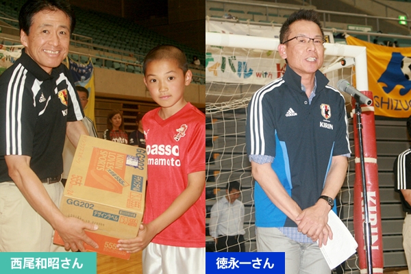 キリンビールマーケティング(株)の西尾和昭静岡支社長(56)とキリンビバレッジ(株)徳永一静岡支社長(49)も会場で熱戦を見守っていました。サッカーどころの静岡だけあリ、両支社長とも関連会社などのチームでプレーすることもあるという。徳永氏は「親子で一緒にプレーできるのはとても良い経験になる。夢中にプレーする姿に家族愛を感じました」と感想を話した。