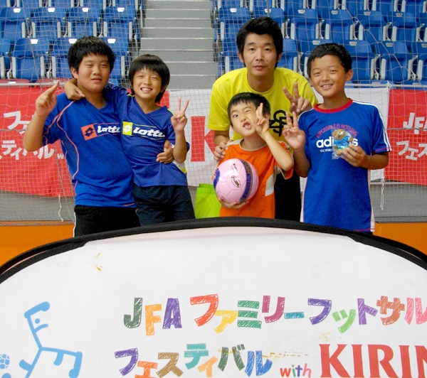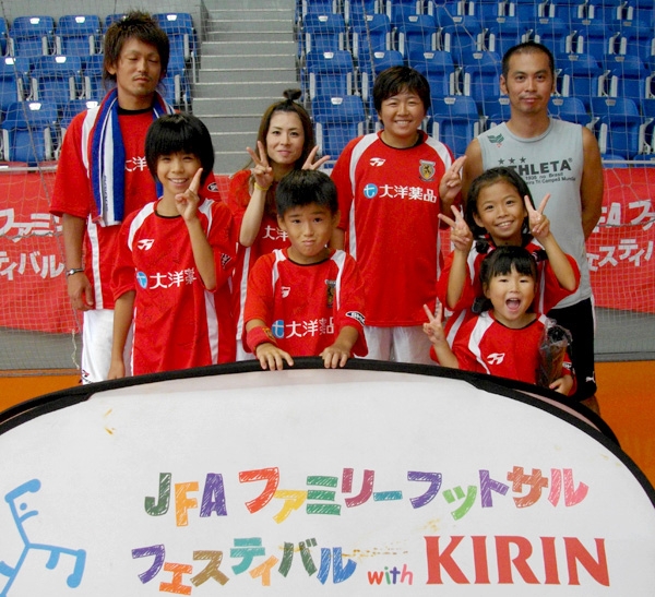 家族の触れ合いと、ボールを蹴る楽しみを味わうことをテーマに開かれる「JFAファミリーフットサルフェスティバル2011 with KIRIN スペシャルステージ in 大洋薬品オーシャンアリーナ」(愛知県)が8月28日、愛知県内から20チーム、約170人が参加して開催された。今回はファミリーとU-8の2つのカテゴリーで実施。ファミリーの部から「FCシャーク」がファミリー賞を受賞した。同じくフェスティバル賞に「FC・KOYASHIKI」、フットサル賞に「イナバジGO」がそれぞれ選ばれた。