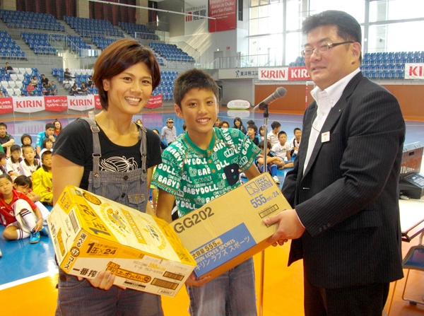 表彰式であいさつに立ったキリンビール(株)辻順中部圏統括本部営業企画部長は、「日頃からキリン商品をご愛顧いただき心よりお礼申し上げます。キリングループは1978年の本格的国際サッカー大会『ジャパンカップ』(現・キリンカップサッカー)に協賛して以来、32年間にわたり、日本代表チームのオフィシャルスポンサーとして、サッカーをずっと応援しています。そして、本日は『JFAファミリーフットサルフェスティバル2011 With KIRIN』スペシャルステージにご参加いただき誠にありがとうございました。日本代表をサポートするとともに、みなさんがファミリーで楽しめるフットサルをこれからも支援していきます」とあいさつした。また、名古屋工場が来年操業50周年を迎えることに触れ、「今年4月に工場見学コースをリニューアルしました。みなさん是非お越しいただいて、試飲などお楽しみ下さい」と話した。工場見学の予約問い合わせは、キリンビアパーク名古屋 見学予約受付 電話 052-408-2000まで。