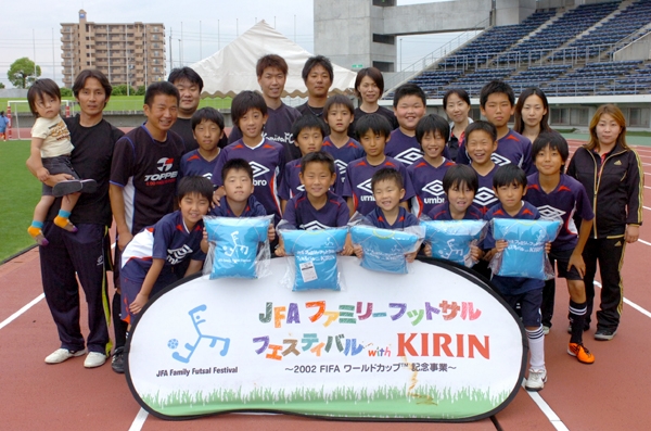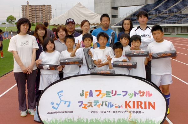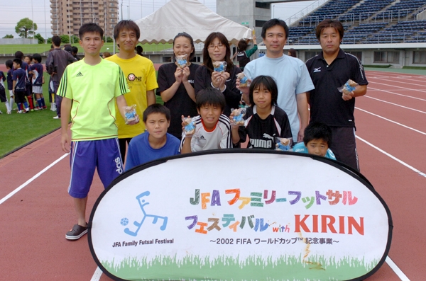 家族の触れ合いと、ボールを蹴る楽しみを味わうことをテーマに開かれる「JFAファミリーフットサルフェスティバル2011 with KIRIN スペシャルステージ in 香川」が6月19日、香川県立丸亀競技場(丸亀市)で、徳島、高知、愛媛、香川の四国4県から32チーム、345人が参加して開催された。当日は前日から降り続いた雨も止み、天然芝のピッチに参加者たちの元気な歓声が響いた。ファミリー賞は「上板アミーゴ」が授賞。フェスティバル賞に「十市ボアソルテ」、フットサル賞に「東温FC」がそれぞれ選ばれた。
