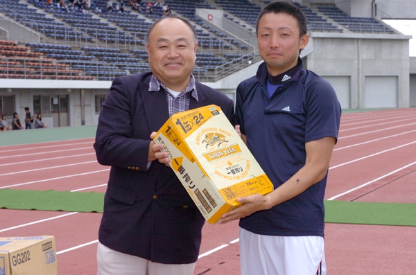 熱戦を観戦したキリンビバレッジ(株)塚原光彦四国支社長(49)は「キリングループは、32年に渡り、日本代表のオフィシャルスポンサーとしてサッカーも応援しています。また東日本大震災の復興支援も取り組んでいきたい」と話した。