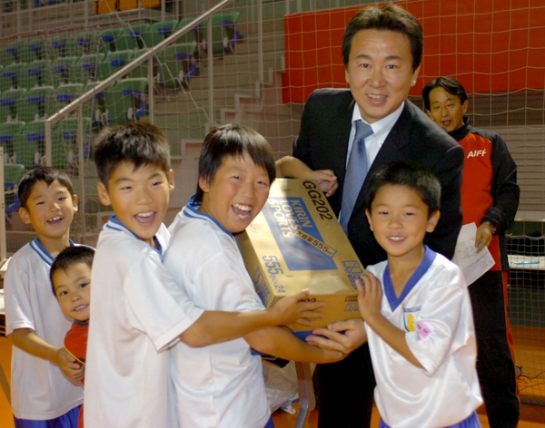 日ごろよりキリン商品をご愛飲いただきまして誠にありがとうございます。また本日は「JFAファミリーフットサルフェスティバル2010 with KIRIN スペシャルステージ in 愛知」にご参加いただきありがとうございました。このフェスティバルはフットサルの経験者はもちろんですが、経験のない方にもボールを通じてフットサルの楽しさを理解していただこうと行っております。みなさんのプレーを拝見して大変感動いたしました。家族みんなでプレーして、失敗してもみんなで助け合い、またシュートが決まったら家族みんなの笑顔があふれるという素晴らしいシーンを見せていただいたことを感謝いたします。
