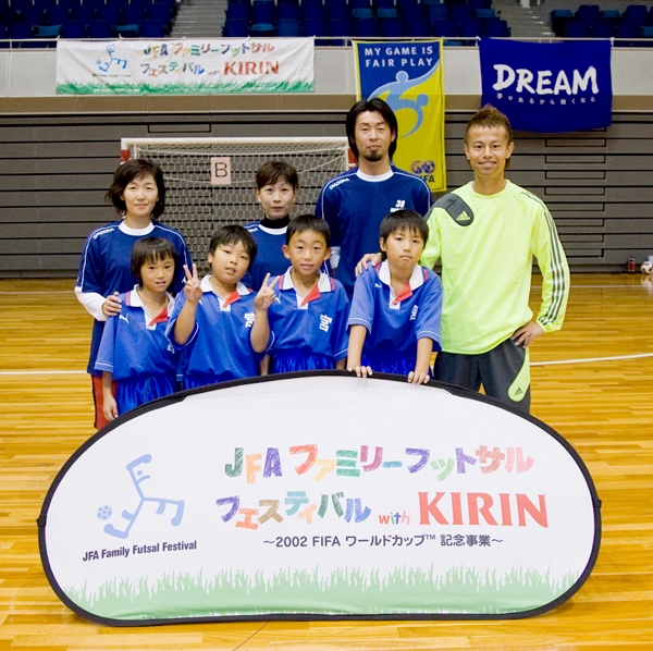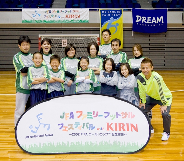 家族のふれあい、ボールを蹴る楽しみを味わうことをテーマに開かれる「JFAファミリーフットサルフェスティバル2009with KIRIN スペシャルステージin 大阪 舞洲アリーナ」が3日開催され、約300人が心地いい汗を流し家族の絆を深めた。表彰式では勝敗に関係なくフットサルを楽しんだ「宮イレブン」にファミリー賞、「エスタボンA」にフェスティバル賞、「FCおきらく」にフットサル賞が贈られた。