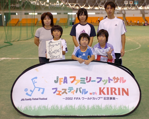 午前中のリーグ戦では、お父さんのアドバイスに子供たちが動き、お母さんとのボールの奪い合いなど微笑ましい中にも真剣なプレーが続出。午後からはキリンフットサル教室のほかにボールゲームやミニ運動会も開かれるなど家族の触れあいを存分に楽しみ絆を深めた。また盛りだくさんの賞品やお楽しみ抽選会もあり、最後まで歓声はやまなかった。