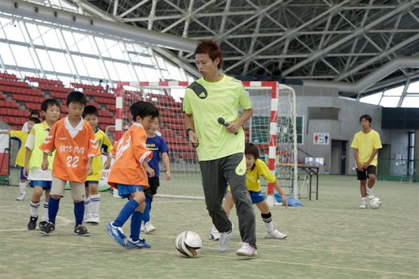 フットサル元日本代表でJFAアンバサダーの相根澄(さがねきよし)さん(35)による「キリンフットサル教室」が交流戦の合間に行われ、小中学生約70人が参加した。「一番大事なことは、どれだけ真剣にやれるか。そして人の話を聞けるか。それが出来た人は皆うまくなっている」という相根さん。教室はこのテーマを随所に織り込んだものとなった。