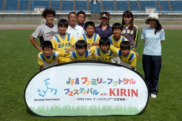 暑さもぶっ飛んだ。親子の絆も深まった !! 家族のふれあい、ボールを蹴る楽しみを味わうことをテーマに開かれる「JFAファミリーフットサルフェスティバル2009with KIRINスペシャルステージin高知春野」が、14日、高知県立春野総合運動公園陸上競技場で開かれ、リーグ戦とフットサル教室で盛り上がった。表彰式では勝敗には関係なくフットサルを楽しんだ「イースト」にファミリー賞、「北条FC」にフェスティバル賞、「瀬戸大橋パワーズ」にフットサル賞が贈られた。