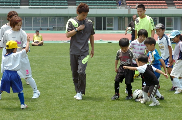元フットサル日本代表でJFAアンバサダーの相根澄(さがね・きよし)さん(35)による「キリンフットサル教室」が交流戦の合間に行われ、小学生中心に約80人が参加した。「後で後悔しないように最初から全力でやって欲しい」と相根さん。まずはピッチを駆け回る〝鬼ごっこ〟だ。遊びの中にも〝考える〟大事なヒントがある。「常に考えられる選手になること」とアピール。そして「最も大事なことはボールを止めること。そうすれば後は何でもできる」と、体調管理の重要性も含めて強調。その後は相根さんと高知女子大選手のチームを相手に子供たちと実戦を行った。子供たちが考えながら楽しく技術を習得できるように、相根さんは華麗な足技を披露したり、時にはフェイントを交えたりしながら、適切なアドバイスを送った。VAMOS朝二チームの竹内優太君(小5)は「チームワーク、止めることなど勉強になりました」と話してくれた。