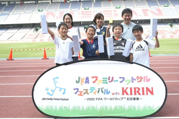 「JFAファミリーフットサルフェスティバル2009 with KIRIN スペシャルステージ in 神奈川」が6月13日、横浜市の日産スタジアムで開催された。30チームが参加。この大会の趣旨は勝敗よりもプレーを楽しむこと。開会時には曇り空だったが、午後から晴天に恵まれ、参加者たちはさわやかな汗を流しながら家族や仲間とフットサルを楽しんだ。