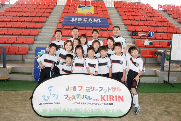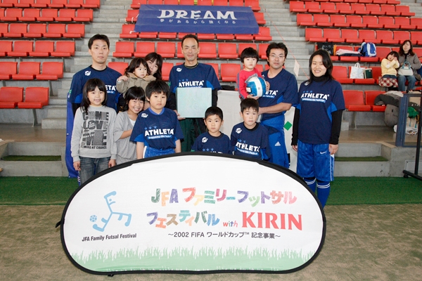 巨大ドームの下で親子の絆もぐっと深まった !! 家族のふれあい、ボールを蹴る楽しみを味わうことをテーマに開かれる「JFAファミリーフットサルフェスティバル2008 with KIRIN スペシャルステージin四日市ドーム」(三重県)が14日開催され、リーグ戦とフットサル教室などで参加者は楽しい1日を過ごした。表彰式では勝敗に関係なくフットサルを楽しんだ「スピノサウルス」にファミリー賞、「ファイヤードラゴンII」にフェスティバル賞、「まにゅ」にフットサル賞が、それぞれ贈られた。