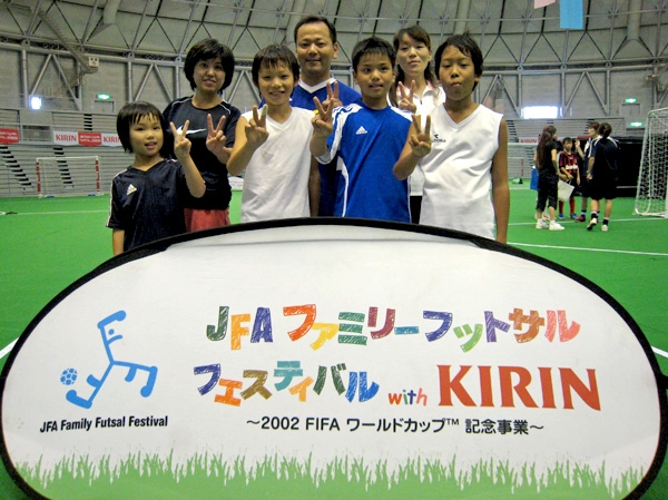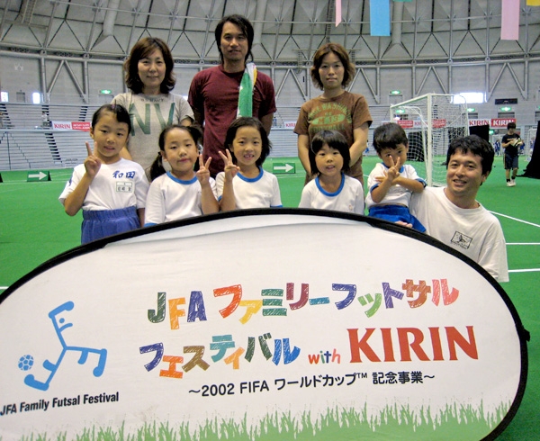 巨大ドームの下で親子の絆もぐっと深まった!!家族のふれあい、ボールを蹴る楽しみを味わうことをテーマに開かれる「JFAファミリーフットサルフェスティバル2008with KIRIN スペシャルステージ in FUKUI」が、7日、サンドーム福井で開かれ、リーグ戦とフットサル教室で楽しい1日を過ごした。表彰式では勝敗に関係なくフットサルを楽しんだ「岩崎ファミリー」にファミリー賞、「チーム サイヤマ」にフェスティバル賞、「Spring Hill」にフットサル賞が、それぞれ贈られた。