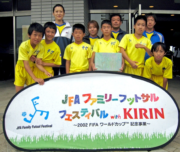 「ファミリー賞」を獲得したのは「素鵞サッカースポーツ少年団A」チーム。愛媛の松山から早朝6時半に出発、2時間半をかけてやってきた。今年で創立31年目になるという少年サッカークラブのメンバーと、その両親で2チームを作って参加した。