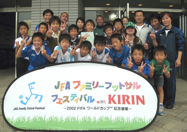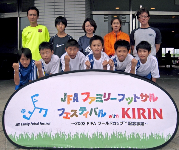 家族、仲間と笑った!楽しんだ!家族のふれあい、ボールを蹴る楽しみを味わうことをテーマに開かれる「JFAファミリーフットサルフェスティバル2008with KIRIN スペシャルステージ in 徳島」が6月15日、徳島県立鳴門総合運動公園で開かれ、リーグ戦とフットサル教室で楽しい1日を過ごした。表彰式では勝敗には関係なく「素鵞サッカースポーツ少年団A」にファミリー賞「MF新堀」にフットサル賞、「FC源内」にフェスティバル賞が、それぞれ贈られた。