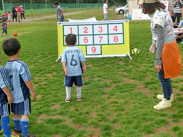 参加者全員で広いグランドをつかい、U-6・U-7を対象にキックターゲット等を開催した。