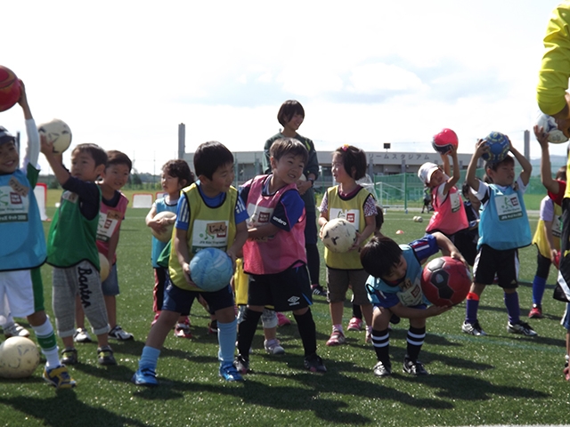 天気も良く、また素晴らしい環境の中で行う事が出来ました。選手達はすぐに仲良くなり一生懸命にボールを追いかけていたのが印象に残っています。コーチ達の巧みな言葉使いでやる気になりみるみるうちに上手になっていったように感じました。選手・保護者の皆さんの笑顔はとても素晴らし。大学生・高校生の皆さん 丁寧な指導ありがとうございました。今後ともこのような機会を通してサッカーのすばらしさを伝えていきたいと思っています。