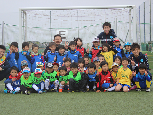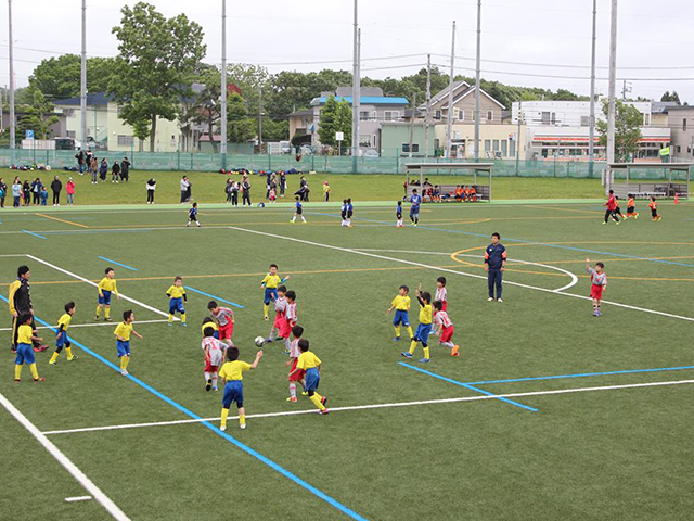 | 概要 | U-6では、エスポラーダ北海道の選手達によるボールを使った遊びを中心に行い、U-8は試合中心で行いました。各カテゴリー最後には選手たちとの試合を行い雨天の中、楽しい一日となりました。 |