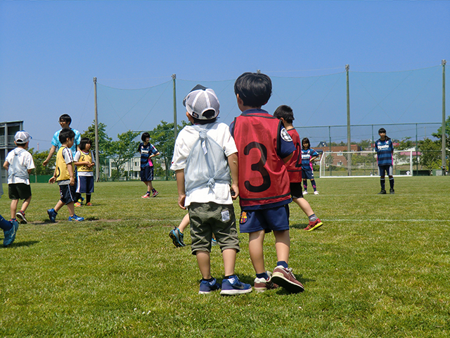 | 概要 | 芝生の上でおもいっきり体を動かし、ボールを追いかけながら、サッカーに携わっていただきます。 |