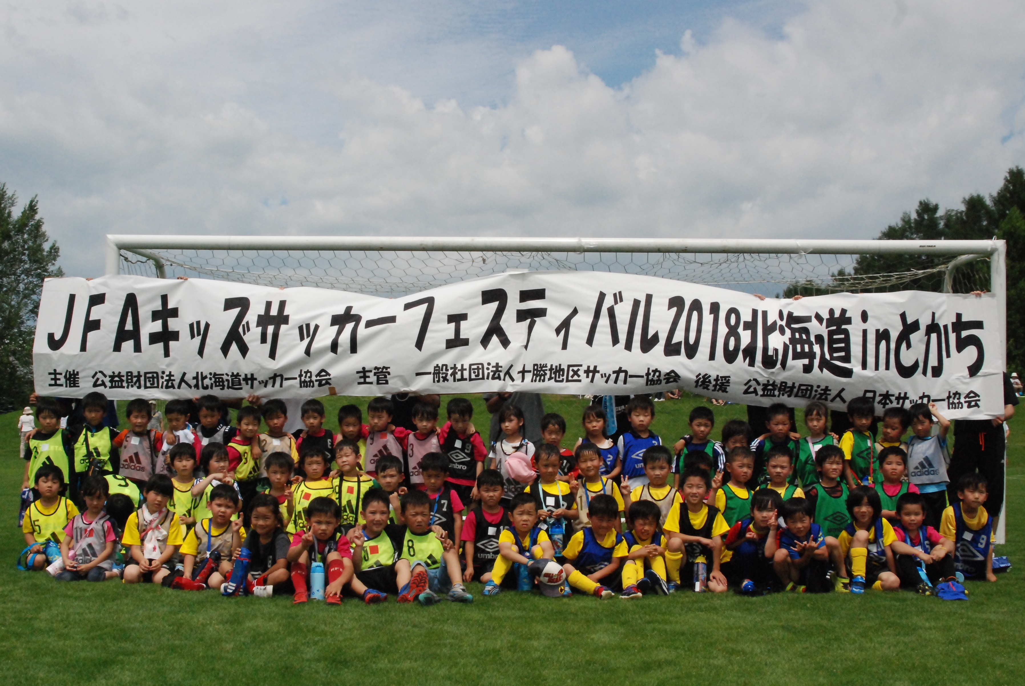 JFAキッズ(U-6、U-8)サッカーフェスティバルは、サッカーが好きな6歳以下、8歳以下の子どもであれば、だれでも参加できる楽しいフェスティバルです。2018年07月22日(日)に北海道帯広市にある「帯広の森球技場」にて230人が参加しました。