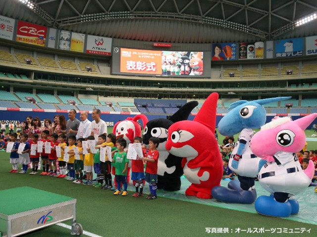 原博実 日本サッカー協会専務理事と、スペシャルゲストの元サッカー日本代表秋田豊さんのほか、株式会社ベネッセコーポレーションのチャレンジ1ねんせいの「コラショ」、名古屋グランパス「グランパスくん」「グララ」、中日ドラゴンズ「シャオロン」「パオロン」のマスコットキャラクターや、中日ドラゴンズオフィシャルパフォーマンスチーム「チアドラゴンズ」も参加。子どもたちと一緒に写真撮影をしたり、ピッチでプレーする子どもたちに声援を送ったりしました。
