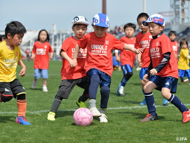6歳以下の未就学児を対象とした、だれでも参加できる楽しいサッカーフェスティバル「JFAユニクロサッカーキッズ」が、3月18日(土)に東京都の夢の島競技場で開催され、1,433人が参加しました。