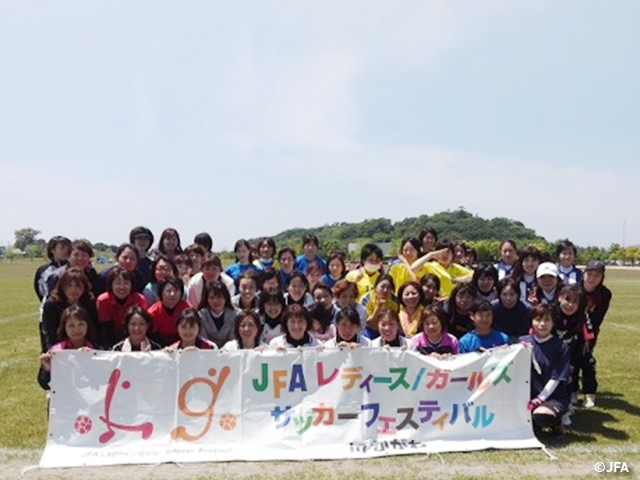5月11日(日)に香川県坂出市にある「瀬戸大橋記念公園球技場」にて約80名が参加しJFAレディースサッカーフェスティバルが行われました。