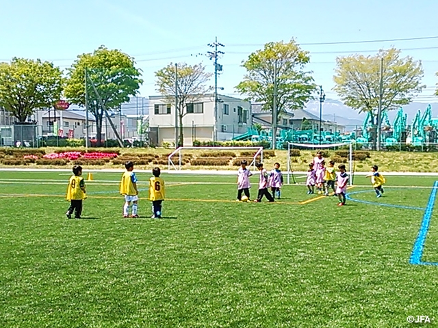 JFAキッズサッカーフェスティバル 長野県の塩尻市中央スポーツ公園サッカー場に、約70人が参加!
