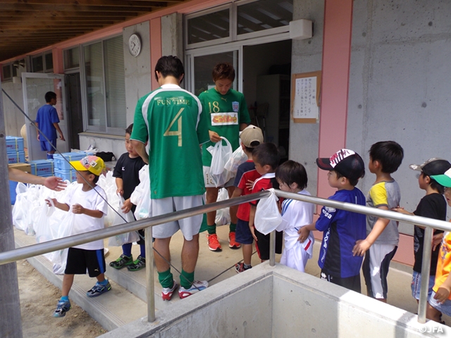 初めてサッカーをやるという子供たちも多くおり、はじめは緊張している様子であったが、終わるころには、子供たち自ら積極的に取り組む姿勢がみられた。楽しかった、もっとやりたいといった声も聞けて良かった。