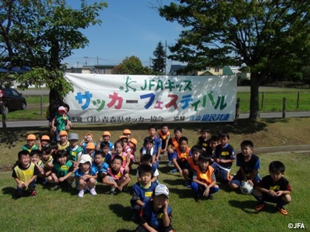 JFAキッズサッカーフェスティバル 青森県の中央公園ふれあい広場に、約80人が参加!