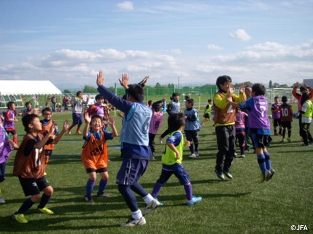 JFAキッズサッカーフェスティバル 北海道旭川市の旭川市東光スポーツ公園に、約400 人が参加!
