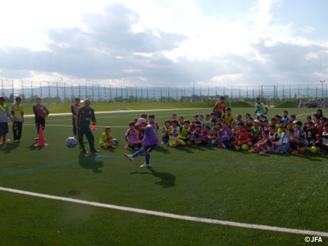 対象は、U6U8U10男女サッカーが大好きな少年少女を対象に行いました。今年度も地元教育大学サッカー部の選手とともに開催することが出来ました。サッカーの楽しさだけでなく仲間つくり・感謝する気持ちなども伝えていきました。この機会を通してサッカーを始めるきっかけになってくれればうれしいです。たくさんの選手の皆さん参加していただきありがとうございました。