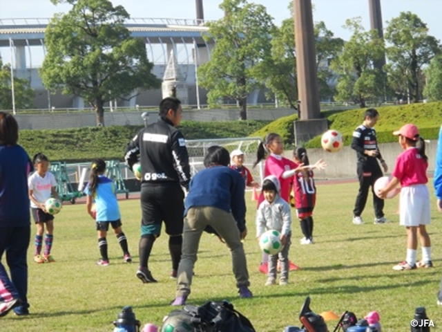 FC岐阜の指導者の指導のもと、U-8,U-10,U-12,レディースがサッカー教室、サッカーゲームに参加した。