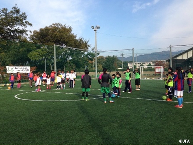 11月24日(月)に愛媛県東温市にある「エヒメフットサルコートジョイグリーン」にて約130名が参加し、JFAレディース/ガールズサッカーフェスティバルを行いました。