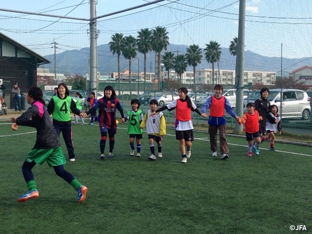 JFAレディース/ガールズサッカーフェスティバル 愛媛県東温市のエヒメフットサルコートジョイグリーンに、約130人が参加!