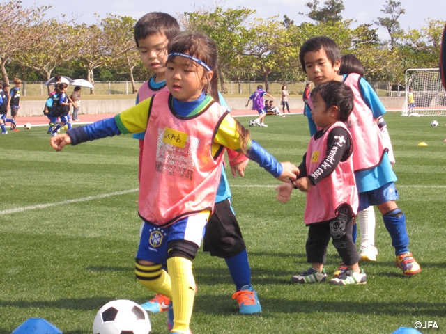 2月21日(土)に沖縄県中頭郡にある「吉の浦公園 ごさまる陸上競技場」にて約210名が参加し、JFAキッズサッカーフェスティバルを行いました。