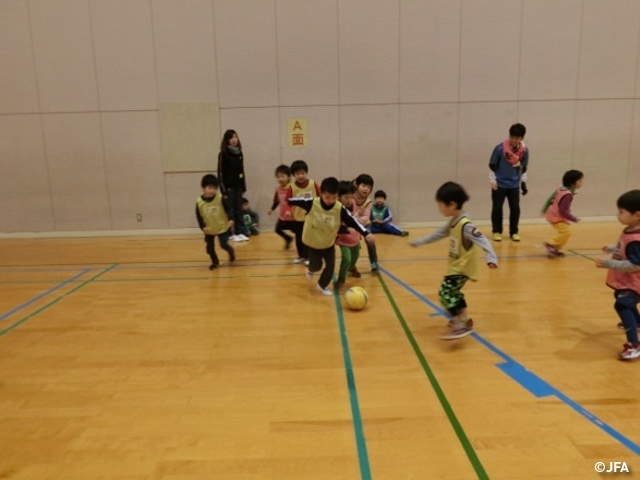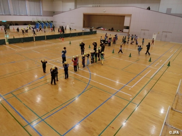 JFAキッズサッカーフェスティバル 福井県吉田郡の永平寺町緑の村ふれあいセンターに、220人が参加!