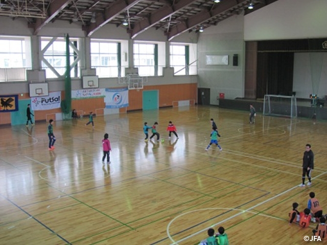 JFAファミリーフットサルフェスティバル 福井県鯖江市の立待小学校体育館に、約140人が参加!