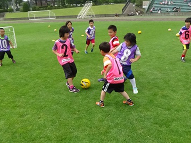 FIFAグラスルーツフェスティバル形式で実施しました。U-6/8/10を対象にワークショップとゲームを通して、一生懸命にボールを追いかけたり、ゴールを決めたりと誰でも参加できるフェスティバルを開催しました。