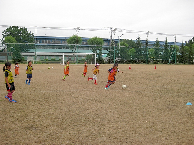 北海道十勝地区の小学生女子を対象に募集しました。U-10北北海道大会と重なっており、参加人数が心配でしたが、たくさん集まってくれ、たくさんの方の協力をいただき無事に開催することができました。とてもみな元気がよく、積極的にかかわってくれ、しかも上手なので驚きました。この年代は楽しさが大切です。これからも子供たちが元気に楽しくサッカーを続けていってくれるといいなと思います。