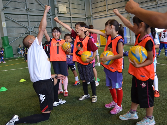 道サッカー協会のHPで知り参加しようと思いました。他のチームの子とチームを組む方法はとても良いと思います。お互いにコミュニケーションを取りすぐに仲良くなっていました。U-8の子どもたちにはボールを追いかけるのにもう少し広いピッチであるとよいと思いました。U-10の子どもについては狭いピッチでのボールの扱いが重視されて良かったと思います。芝生でも室内と同じようにトレーニングの場があると、もっと楽しめると思いました。