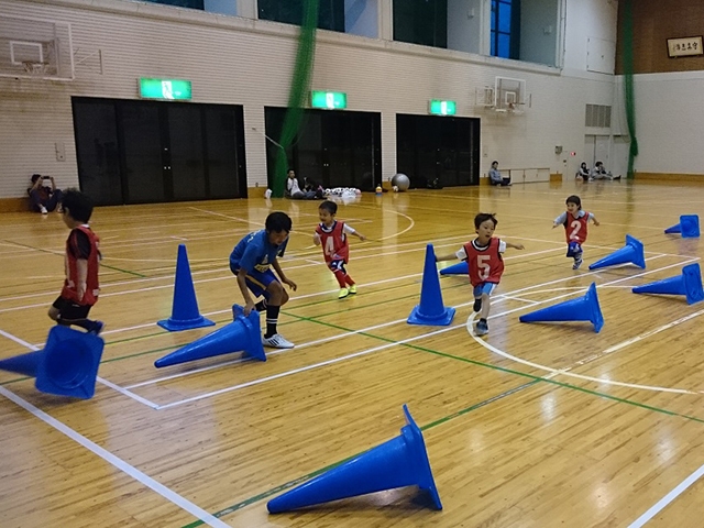 U-6のケテゴリーを対象に、動きづくり、おにごっこ、ボールフィーリングを1から2テーマずつ行いました。また約30分をかけて5対5のミニゲームも行いました。