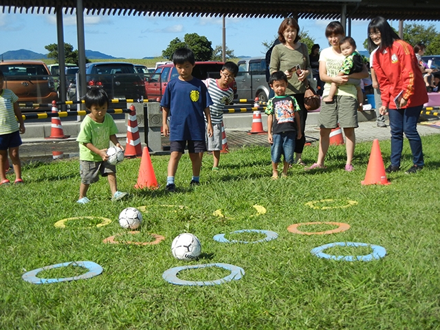 出雲空港のイベントに来場した家族が自由に参加できるいろいろなイベントコーナーを設けました。「体を動かして自由に遊ぶ」ことを目的にサッカーにこだわらないコーナーも設けたことにより1歳から12歳までの子供達131人が参加してくれました。このフェスティバルをきっかっけに、親子の会話が生まれ、体を動かして遊ぶことの楽しさを感じていただいたなら、このイベントの目的は達成されたのではと思っています。