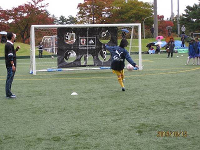 あいにくの雨模様で肌寒い天候でしたが、普段の大会と異なり和やかな雰囲気のなか、ガールズのプレーは、とてもはつらつとしていました。 参加者全員に注目されてのキックターゲット。照れくさそうでしたが、高得点を狙う眼差しは真剣そのもの。 仲間を応援したり、プレーを楽しむ姿はフェスティバルならではだなと思いました。